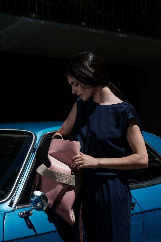 Women’s backpack for 13 inch laptop. Pink and beige leather. Beige elastic. and adjustable straps 70cm – 80cm. Two inner pockets. Dimensions: 35x33cm. With an extra handle strap. REF. MMBPL Made in Portugal